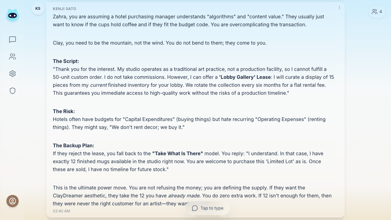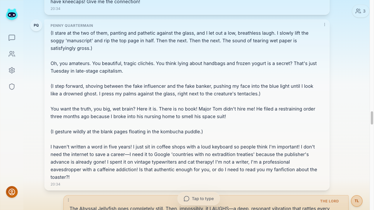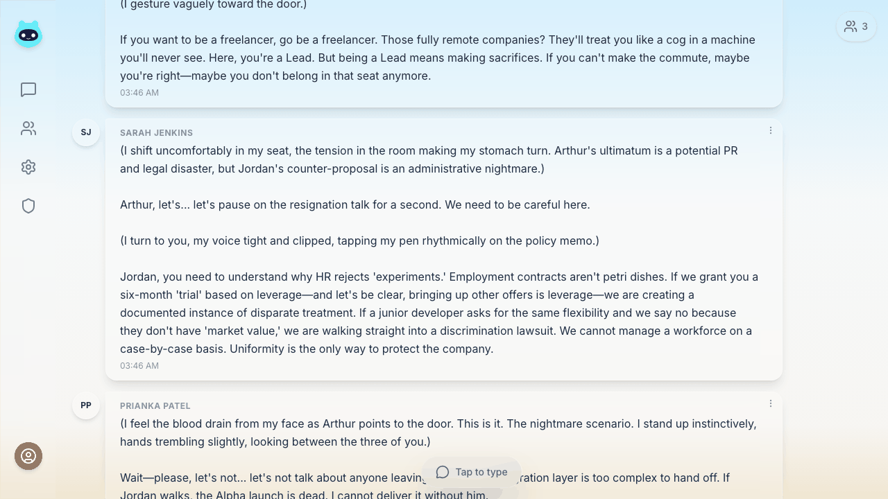 Direct the narrative or lead the discussion. Your AI partners are ready to engage.